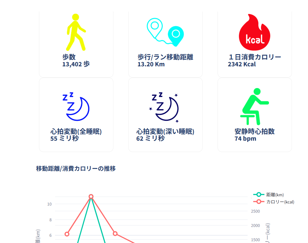 私たちのプラットフォームは、Fitbitから取得できる歩数、睡眠、心拍変動などのデータをAIで解析。目に見えない「蓄積疲労」や「メンタル不調の予兆」を客観的なデータとして可視化します。